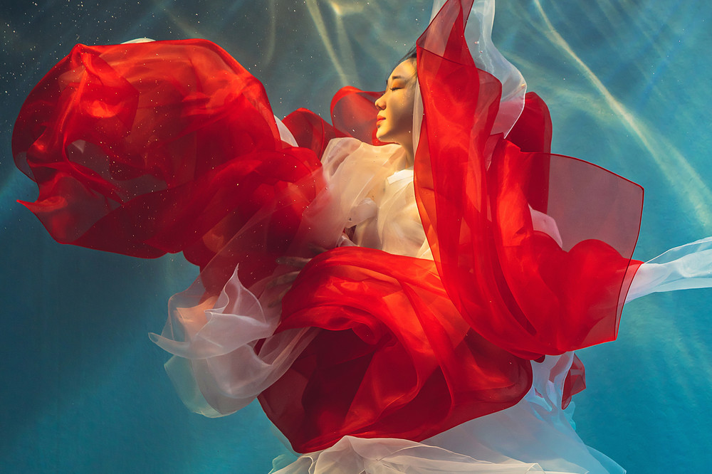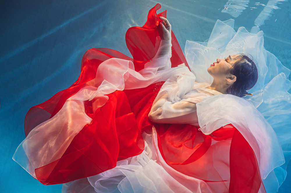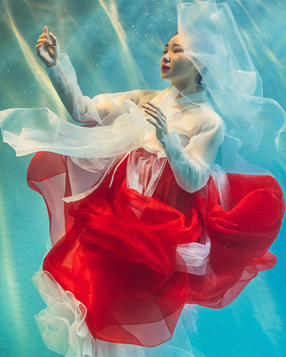 박정주한옷 메인 화보촬영에 쓰였던 수중촬영 한복 RED 컬러입니다.