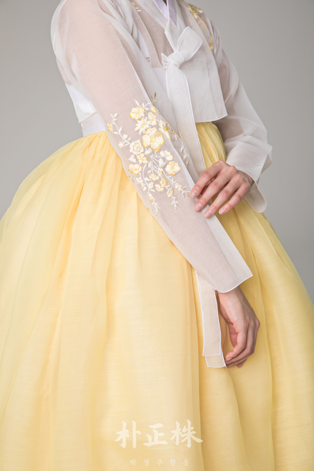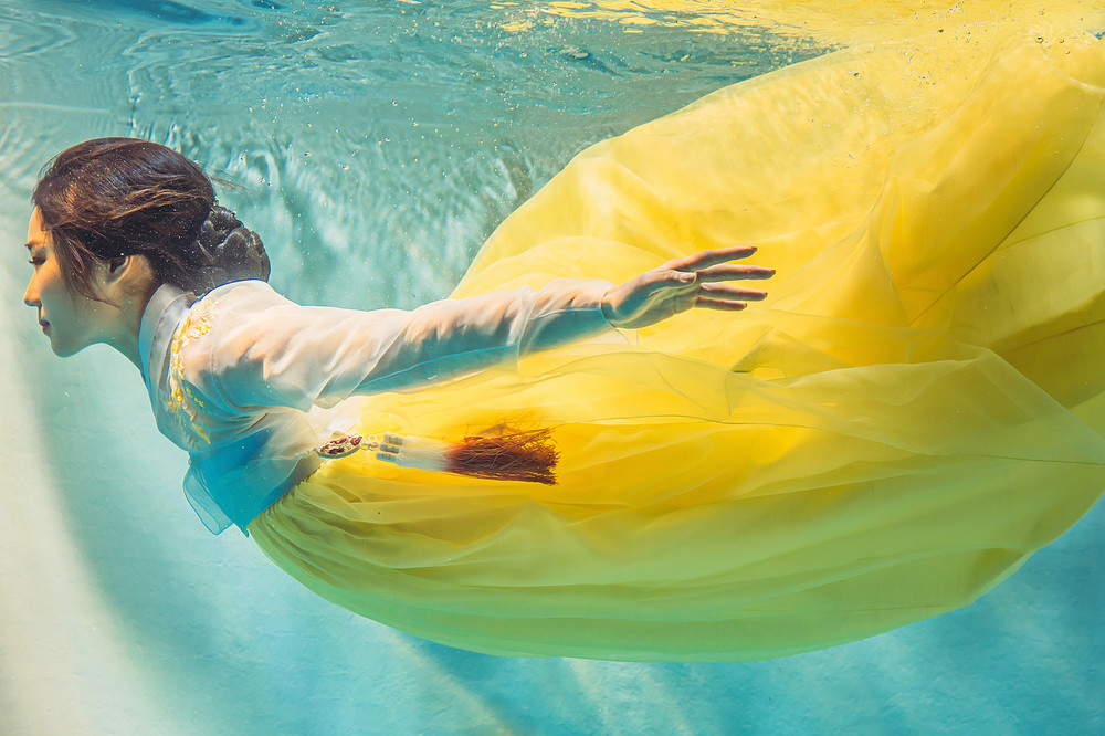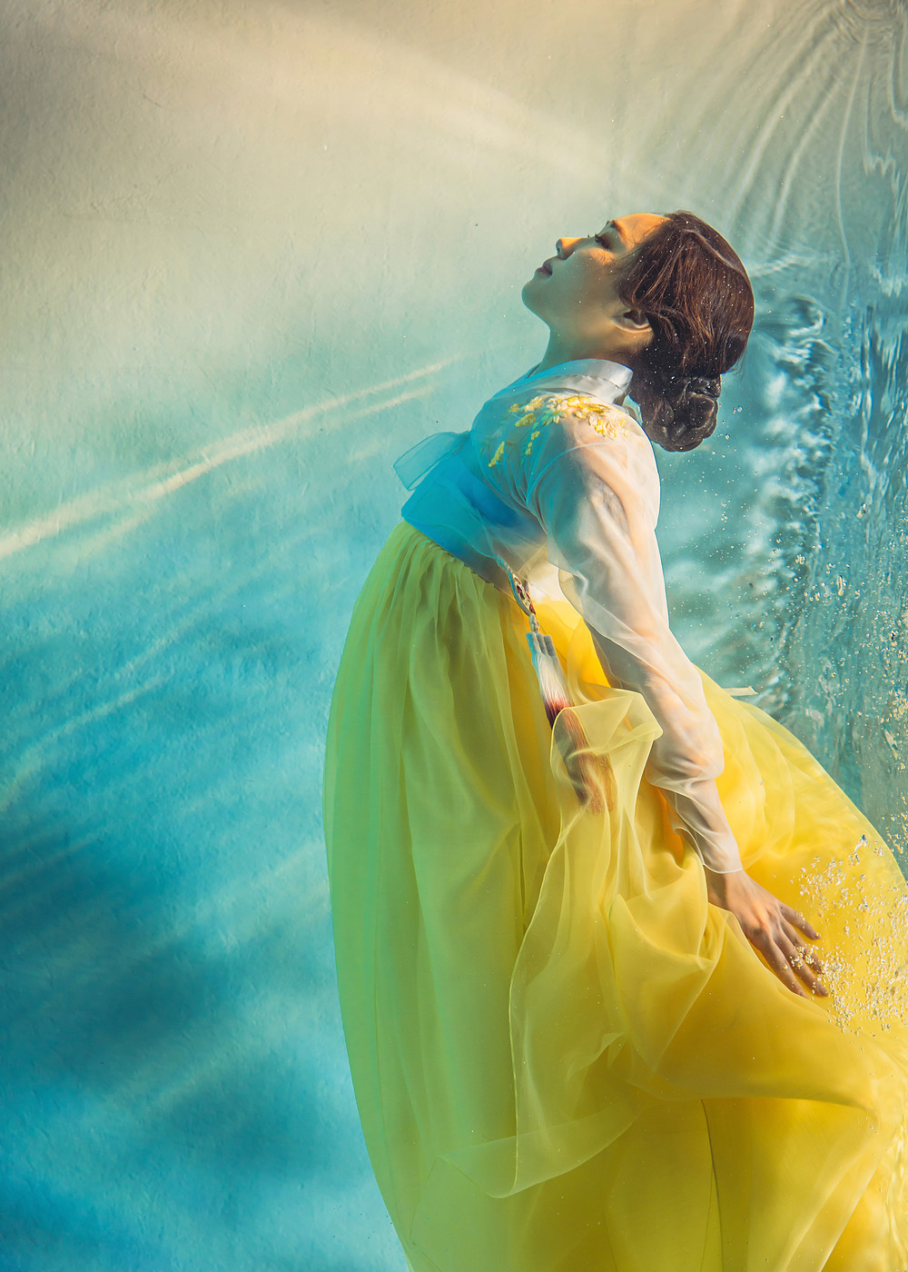박정주한옷 메인 화보촬영에 쓰였던 수중촬영 한복 YELLOW 컬러입니다.